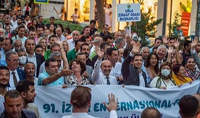 Çok rengin, çok sesin ve çok nefesin ortak bir ruhla güçlendiğini söyleyen Başkan Soyer, “91. fuar etkinliklerimiz kapsamında kurtuluş günümüz 9 Eylül’ü, yüz yıllık zaferimize yakışacak şekilde Türkiye tarihinin en büyük sahne performansıyla kutlayacağız. Aynı akşam megastarımız Tarkan, Kordon boyunda İzmirlilerle buluşacak. Bu akşamdan 11 Eylül’e kadar ülkemizin yetiştirdiği çok sayıda sanatçı İzmir’de olacak. Ve bugün... Fuarımızı açmanın yanı sıra Anadolu’nun lezzetlerini dünya sofralarıyla buluşturuyoruz. İEF’yi dünyanın en önemli gastronomi organizasyonlarından biri olan Terra Madre ile eş zamanlı olarak gerçekleştiriyoruz. Terra Madre Anadolu bizim için sadece bir lezzet fuarı değil. İnsanın yaşamla olan ilişkisini yeniden tarif ettiğimiz, iklim krizi, enerji krizi, gıda krizi, yoksulluk ve savaşlar karşısında kalıcı çözümler ortaya koyacağımız bir ortak akıl hareketi. Bunun somut bir ürünü olan ‘İzmirli’ markamızı kuraklık ve yoksullukla mücadelemizin yepyeni bir sonucu olarak az sonra dünyaya sunacağız. ‘İzmirli’ ile İzmir’in meralarında üretim yapan çobanlarımızdan aldığımız sütlerden üretilen peynirleri, Türkiye ve dünyanın her yerindeki alıcılarıyla buluşturuyoruz. Hep dediğimiz gibi, İzmir’in en ücra köylerindeki küçük üreticilerimizi ve İzmir’in üretici kooperatiflerini ihracatçı haline getireceğiz. Süt ürünleri ile başlattığımız bu yerli ve milli üretim seferberliği, yine kooperatiflerimizin ürettiği zeytinyağı, tahıllar, baklagil ve üzüm gibi ürünleri de içine alarak büyümeye devam edecek. Terra Madre Anadolu ile başlayan bu çalışmamız, komşusu açken gözüne uyku girmeyenlerin, 'kurda, kuşa, aşa' diyerek; kendisi ve doğa için aynı anda üretmesini bilenlerin seferberliği, hayatta kalma mücadelesidir” diye konuştu.