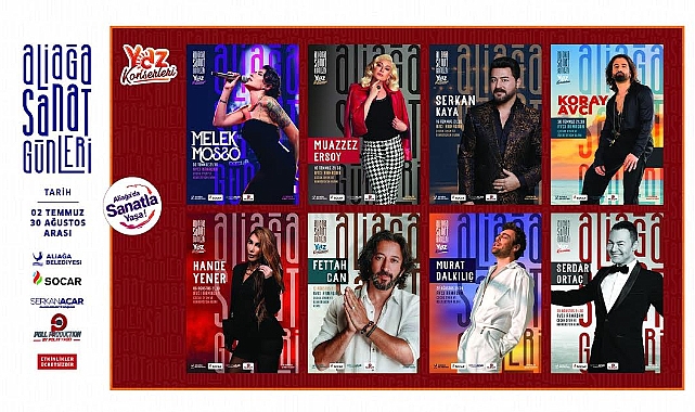 tedbirlerle besleyerek inkişaf ettirmek Milli Ülkümüzdür” demiştir. Bizde ‘Aliağa’da Sanat Günleri’ ile ailelerimizi ve çocuklarımızı sanat ve sanatçılarla buluşturmayı hedefledik. Pandemi nedeniyle bir arada olmayı özlemiştik. Kavuşmalarımıza unutulmaz hatıralar ekleyelim dedik. Biz hazırız, sizler de hazırsanız yarın (1 Temmuz) başlıyoruz. İzmir’in Yükselen Yıldızı Aliağa, ülke ekonomisine yön veren sanayisiyle, binlerce yıllık tarihi ve kültürel mirasıyla, turistik ve doğal güzellikleri, Mavi Bayraklı plajlarıyla İzmir ve Türkiye’de adeta bir güneş gibi parlıyor. Bu yıldız şimdi sanatla parlayacak. Aliağa’da bu yaz sanat ve eğlencenin coşkusu yaşanacak. Aliağalıları, İzmirlileri ve Türkiye’nin her yerinden vatandaşlarımızı Aliağa Sanat Günleri’nde buluşmaya davet ediyoruz” dedi.Ünlü sesler ve ünlü yüzler sahnede Aliağa Belediyesi, yaklaşık iki yıl süren pandeminin ardından kültür sanat etkinliklerine