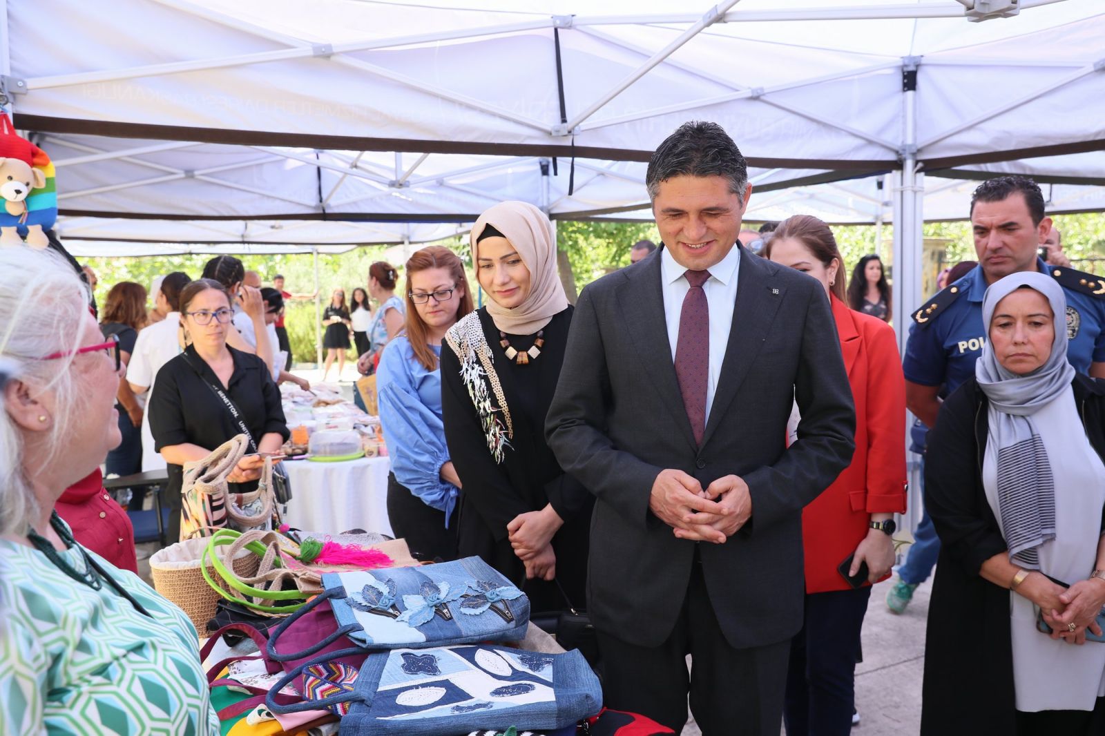 Katılımcılar, açılışın ardından takı, çanta, el nakışı, ahşap, kıyafet, yağlı boya tablo ve ev tekstili gibi birçok ürünün bulunduğu sergiyi gezerek ürünler hakkında kurs öğretmenleri ve kursiyerlerden bilgi aldı.