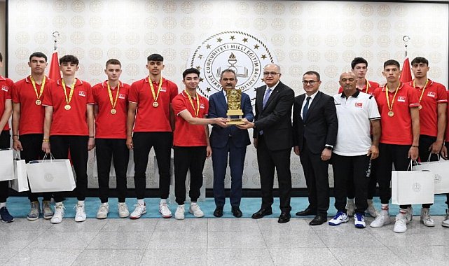Millî Eğitim Bakanı Mahmut Özer, Brezilya'da düzenlenen Voleybol Liseler Arası Dünya Şampiyonası'nda namağlup bir şekilde şampiyon olan TVF Spor Lisesi Erkek Voleybol Takımı'nın oyuncu ve yöneticilerini kabul etti.