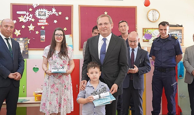 ziyaret ettiği sınıflarda tek tek öğrencilere dağıtıldı.Minik öğrencilere karnelerini dağıtan Kaymakam Hasan Yaman ile Belediye Başkanı Mesut