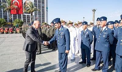 İzmir Büyükşehir Belediye Başkanı Tunç Soyer, Gaziler Günü nedeniyle Cumhuriyet Meydanı’nda düzenlenen törene katıldı.