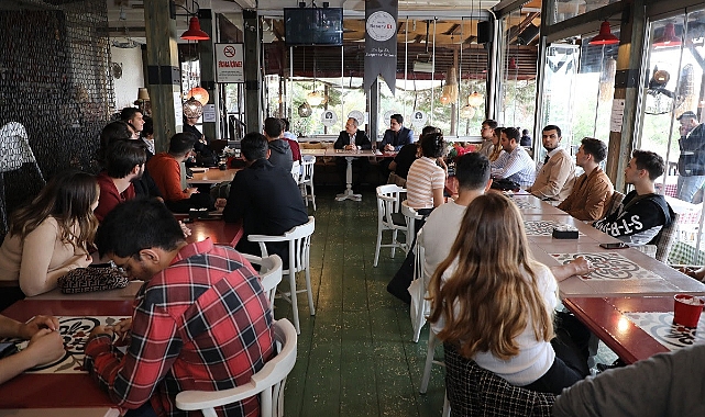 AK Parti İzmir İl Başkanı Kerem Ali Sürekli, İl Gençlik Kolları Başkanı Recep Tayyip Taslak ile birlikte İzmir Ekonomi Üniversitesi Siyaset Platformu Kulübü öğrencilerinin programına konuk oldu. Öğrencilerin tüm sorularını içtenlikle yanıtlayan Başkan Sürekli, “Gençlerimizin müthiş bir enerjisi var, gerek gündemi gerekse partimizin çalışmalarını yakından takip etmelerinden büyük mutluluk duydum. Samimi soruları ve ilettikleri görüşleri her birinin ne kadar dolu olduğunu gösteriyor" dedi.