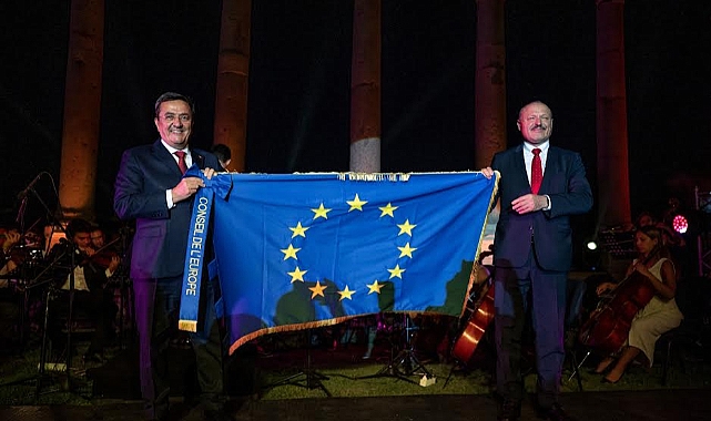 Konuşmaların ardından Avrupa Konseyi Parlamenterler Meclisi Onursal Üyesi Valeriou Ghiletchi, Avrupa Şeref Bayrağı’nı Konak Belediye Başkanı Abdül Batur’ a takdim etti.