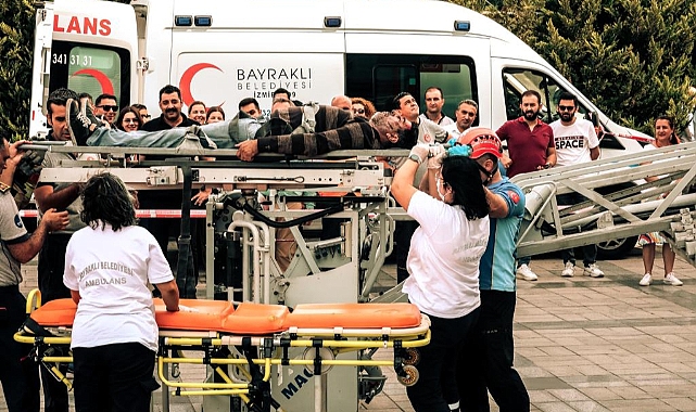 İtfaiye haftası etkinlikleri kapsamında Bayraklı Belediyesinde yangın tatbikatı düzenlendi. Senaryo gereği 7’inci katta mahsur kalan bir personel ile yangının çıktığı 3’üncü kattaki kişi kurtarıldı. Tatbikat kapsamında bayraklı belediyesi ana hizmet binasının üçüncü katında elektrik kontağından çıkan yangına; iki arazöz, bir merdivenli araç, bir AKS 110 kurtarma aracının yanı sıra paramedik ekiplerle müdahale edildi. Tatbikatta, sirenler eşliğinde yangını fark eden personeller hızla acil çıkış merdiveninden tahliye edildi. Kısa sürede olay yerine gelen itfaiye ekipleri, yangına hızla müdahale ederek, kontrol altına aldı. Personellerin ve sokaktan geçen vatandaşların ilgiyle izlediği tatbikat başarıyla sonuçlandı.