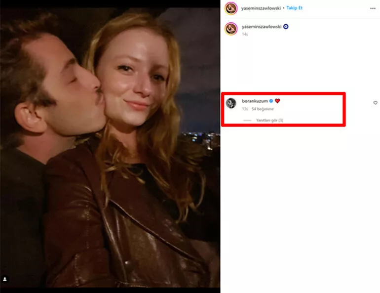 Kuzum ise sevgilisinin paylaşımına kalp koyarak yanıt verdi.