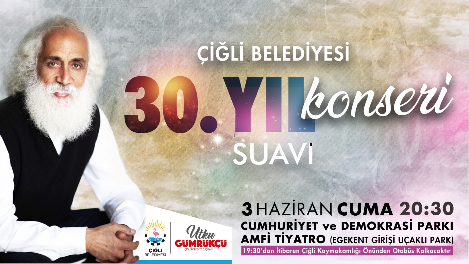 Çiğli Belediyesi Fakir Baykurt Salonu ve Fuaye Alanı’ndaki etkinliklerin ardından kutlamalar Türk müziğinin usta isimlerinden Suavi’nin saat 20:30’da Cumhuriyet ve Demokrasi Parkı Anfi Tiyatrosunda sahne alacağı konserle devam edecek.