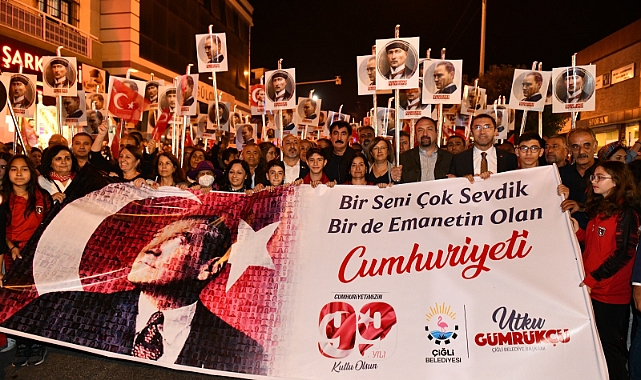 Cumhuriyetin 99. yılına yakışır bir kutlama gerçekleştirdiklerini ifade eden Çiğli Belediye Başkanı Utku Gümrükçü, “Cumhuriyet Bayramımızı her yıl olduğu gibi bu yıl da büyük bir coşkuyla kutladık. Dolu dolu bir programla hem tarihimizi ve Milli Mücadele kahramanlarımızı andık hem de millet olarak en değerli kazanımımız olan Cumhuriyetimizin 99. kuruluş yıl dönümünü doyasıya kutladık. Çiğli dün olduğu gibi bugün de yarın da Cumhuriyetten yana olmaya devam edecek. Her etkinliğimizde bizlerle birlikte olan Cumhuriyeti benimsemiş, onu yaşayan ve yaşatmak arzusunu taşıyan yurttaşlarımıza sonsuz teşekkür ediyorum” ifadelerini kullandı.