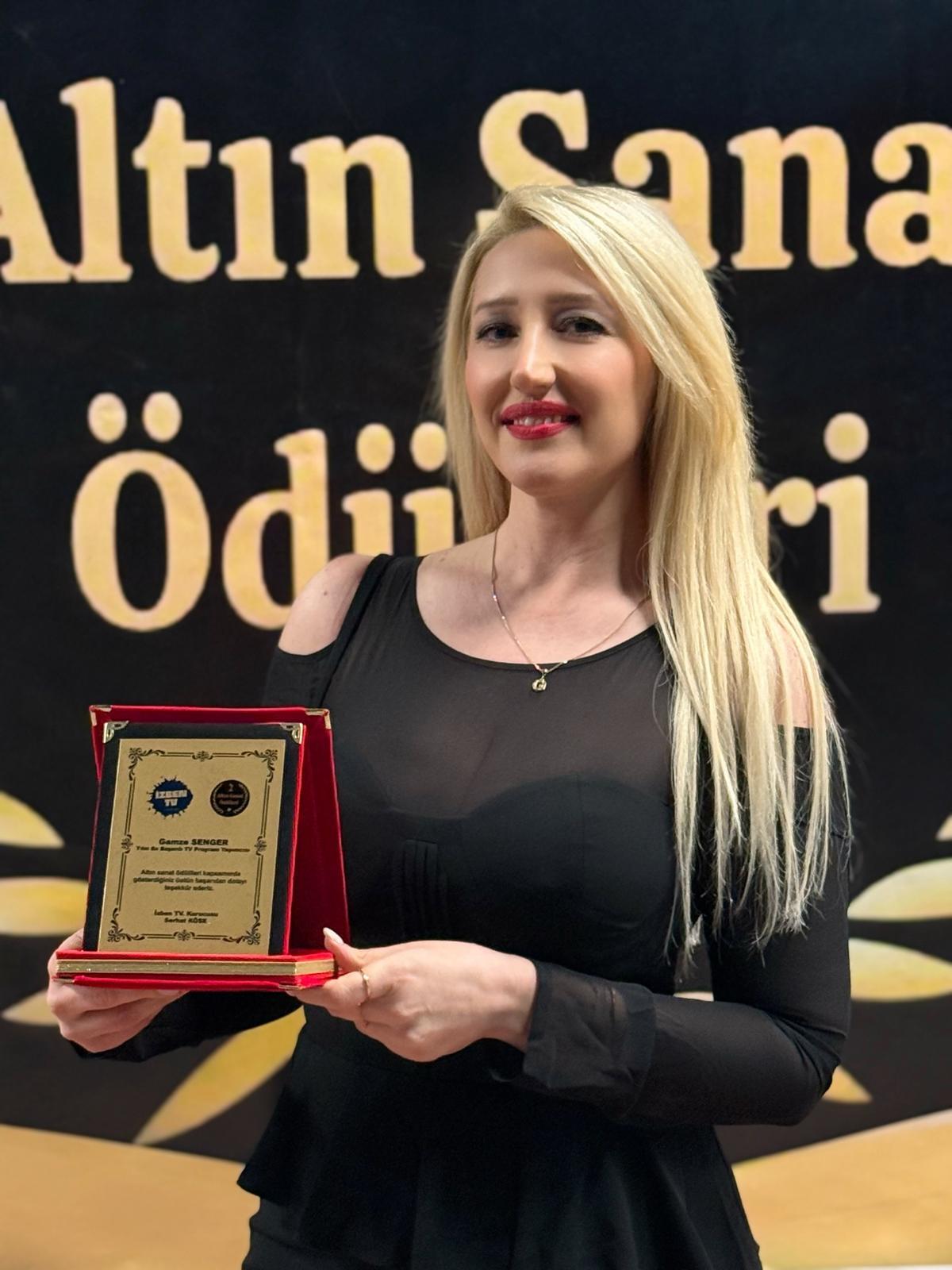 İzmir Mustafa Necati Kültür Merkezi’nde düzenlenen törende sahneye çıkan Gamze Senger, zarafeti, mesleki birikimi ve ekranlardaki etkileyici performansıyla gecenin dikkat çeken isimlerinden biri oldu. Program yapımcılığı ve sunuculuk alanındaki başarısı, jüri tarafından ödülle taçlandırıldı.