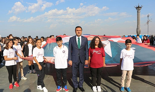 İlköğretim haftası kutlama töreni, İzmir İl Milli Eğitim Müdürü Dr. Murat Mücahit Yentür ve beraberindeki öğrencilerin Atatürk Anıtı'na çelenk sunmasıyla başladı. Program, saygı duruşu ve İstiklal Marşı'nın okunmasıyla devam etti. Şeref defterini imzalayan Yentür, ardından günün anlam ve önemini belirten konuşmasını gerçekleştirdi.