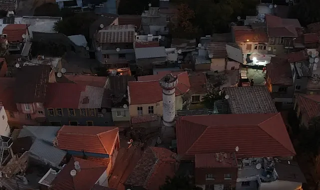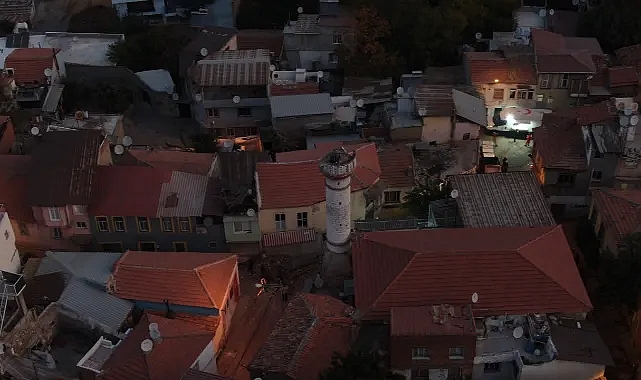 Depremde Konak’ta bulunan Selahattin Camii’nin minaresi yıkıldı. Yıkılan caminin minaresi sabahın ilk saatlerinde havadan görüntülendi.