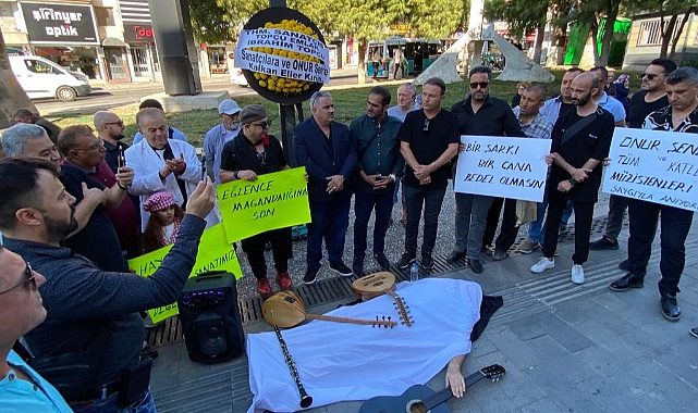 Ankara’da geçtiğimiz günlerde bir eğlence mekânında, müzisyen Onur Şener’den şarkı isteğinde bulunan üç kişi, istekte bulundukları şarkıyı bilmediği için Onur Şener’e saldırmış ve Boğazından cam parçalarıyla ağır yaralanan ve hastaneye sevk edilen müzisyen Onur Şener hayatını kaybetmişti.Temsili bir müzisyenin elinde gitarı ile beyaz kefene sarılarak yere uzandığı basın açıklaması sırasında, İzmirliler duygu dolu anlar yaşadı.