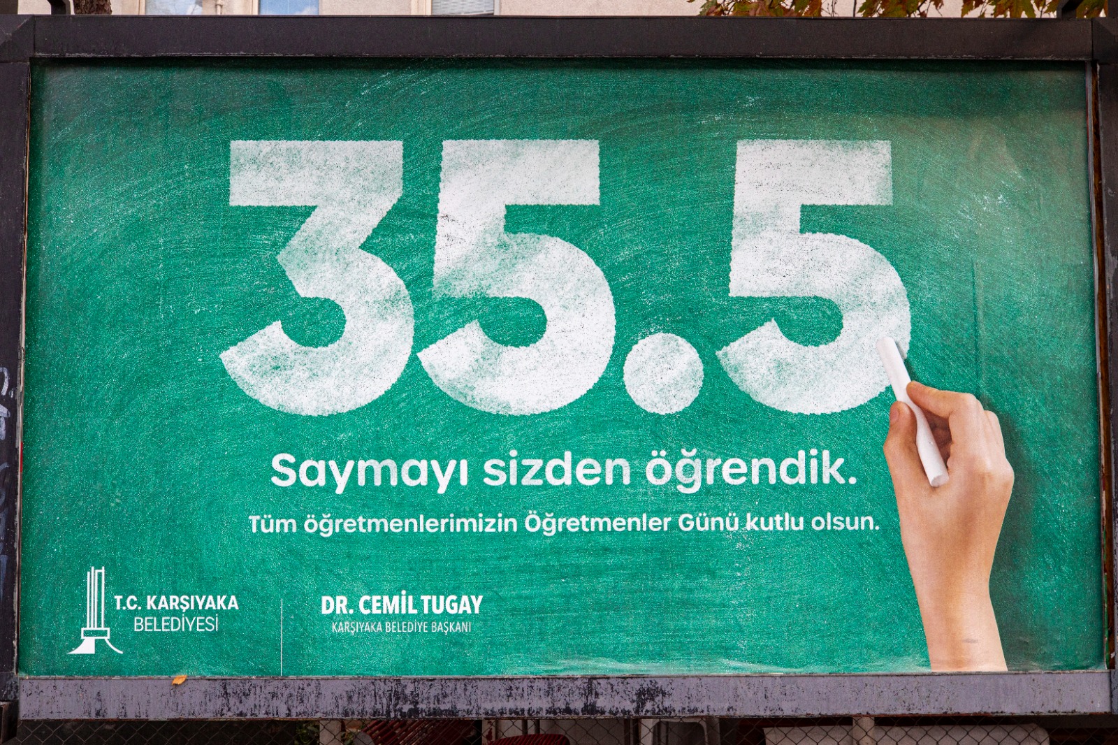 Belediye, kent içinde yer alan reklam panolarını “35.5… Saymayı sizden öğrendik” sloganıyla donatarak kutlamalara Karşıyaka ruhunu da yansıttı.