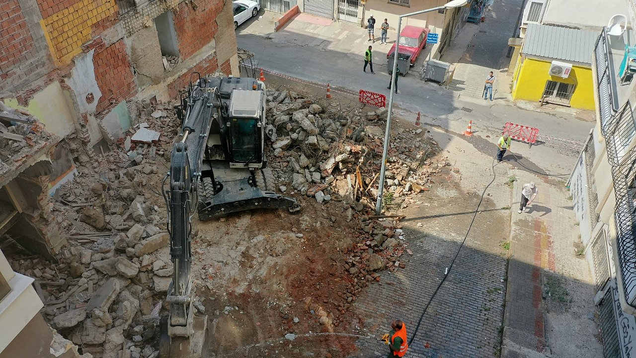Konak'ta tehlike saçan binanın yıkımı gerçekleşti