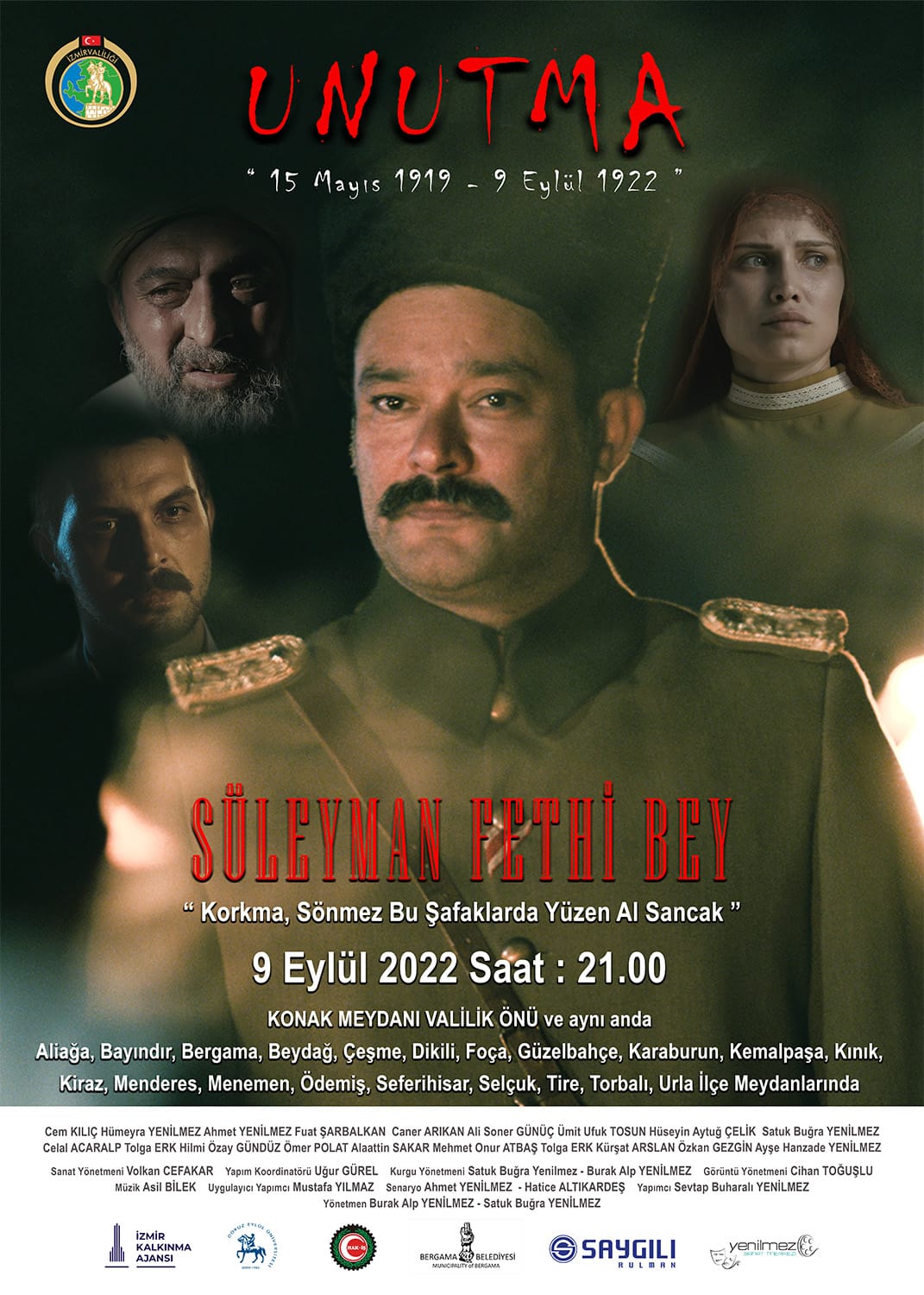Bu filmin, İzmir’in işgali ve kurtuluşuyla alakalı çekilen ilk film olduğunu vurgulayan Vali Yavuz Selim Köşger, “Dününü bilmeyen bugünkü bayramı doya doya kutlayamaz. Tüm İzmirlileri 9 Eylül akşamı Konak Meydanı’nda ve 20 ayrı ilçedeki meydanlarımızda buluşup, bu anlamlı filmi izlemeye davet ediyorum.” dedi