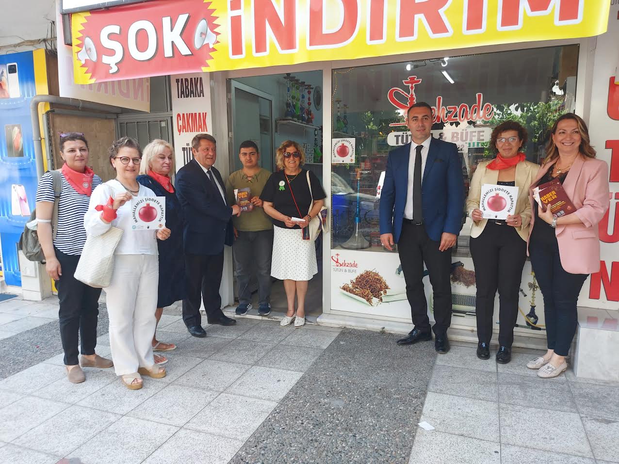 İzmir Gazeteciler Cemiyeti’nin (İGC) ‘Şiddete Karşı İletişim Projesi-NAR’, medyadaki şiddet dilini dönüştürmek ve toplumsal farkındalık yaratmak amacıyla yerel yönetimler desteğiyle NAR Mahalle Buluşmaları düzenliyor. Proje farkındalık çalışmaları kapsamında İGC Genel Sekreteri Mehlika Gökmen, Yönetim Kurulu üyeleri Duygu Tuncer, Meltem Seyis ve Projeler Koordinatörü Reyhan Şenay ile psikolog Sevgi Türkmen ve avukat Birgül Değirmenci Manisa’nın Şehzadeler ilçesi Alaybey Mahallesi’ndeydi. Önce bir kahvehanede Alaybey mahallesinin kanaat önderleri ve muhtarlarla bir araya gelindi. Toplantıya, Manisa Büyükşehir Belediyesi (MBB) Başkan Danışmanı Nursel Ustamehmetoğlu, Manisa Büyükşehir Belediyesi Genel Sekreter Yardımcısı Ertuğrul Yıldırım, Manisa Büyükşehir Belediyesi Muhtarlık İşleri Daire Başkanı Ergün Aksoy, Manisa Büyükşehir Belediyesi Mahalle Hizmetleri Şube Müdürü Nuray Çevirmeci katıldı. Hukuki ve psikolojik bilgilendirme çalışmalarının ardından Manisa Büyükşehir Belediyesi yetkilileri ile esnafa “Mahallemizi Şiddete Kapattık” görselleri ve broşürleri dağıtıldı. İGC Nar Proje Ekibi, esnaf buluşmasının ardından Manisa Büyükşehir Belediyesi’nin Kırmızı Ev Kurs Merkezi’nde kadınlarla bir araya geldi.