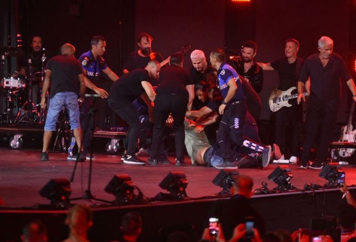 Sahneye atlayan vatandaşa müdahale eden ekiplere Tarkan, "Arkadaşa nazik davranın sevgi gösterisinden olmuştur" dedi. Tarkan, “İzmir Marşı’nı söylemeden İzmir’den gitmem” diyerek yarım kalan marşı söyledi.