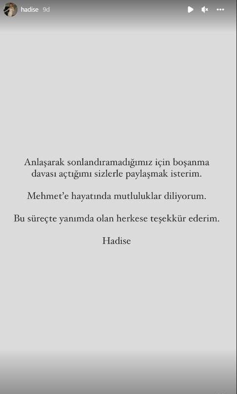 İşte Hadise’nin boşanma davası ile ilgili paylaşımı: